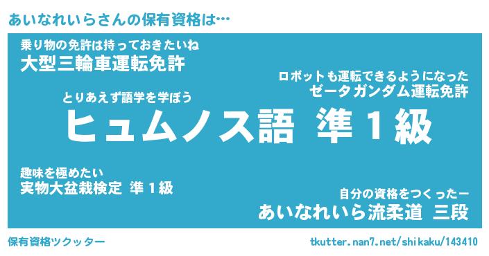 | 伝説のあだ名 | 『封印されし傭兵あいなれいら』 |