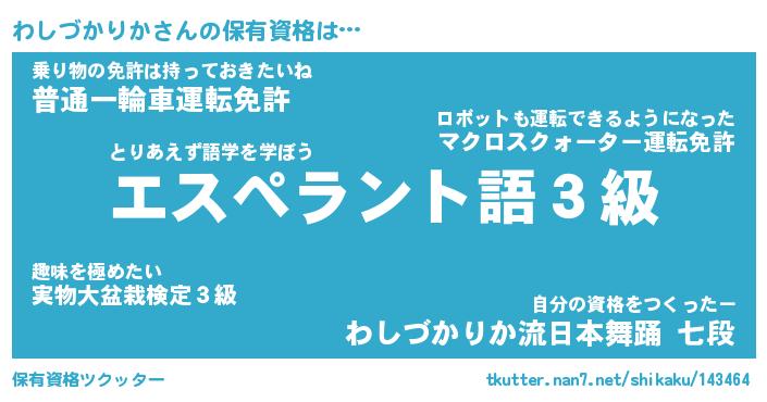 | ツイッター | わしづかりかさんのツイッターID『konnyaku_idle』 |