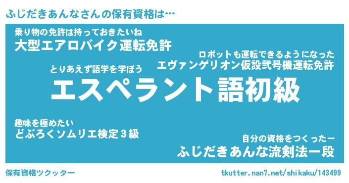 | 恥ずかしいあだ名 | 『プリティーふじだきあんな』『ふじちん』 |