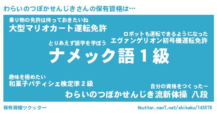 | ヘコむあだ名 | 『わらにー』『なまこ酢』『わらお』 |