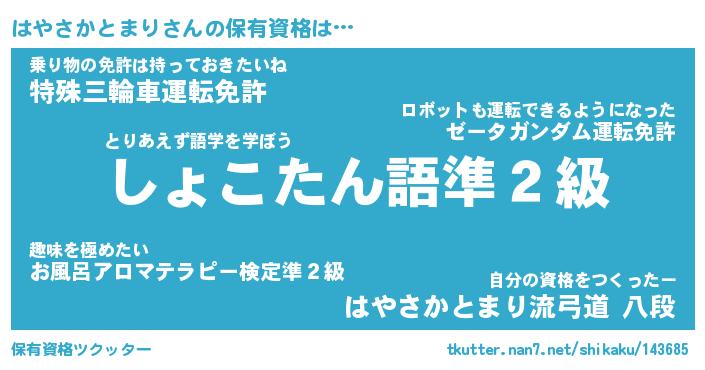 | 自動車の名前っぽいあだ名 | 『ハヤティマ』『ハクア』『ハント』 |