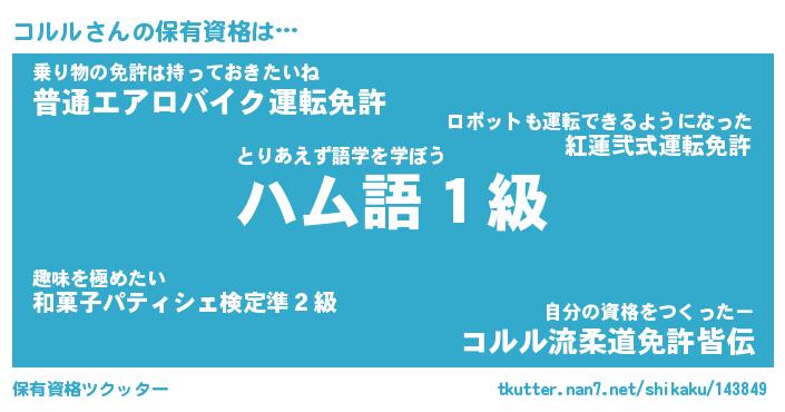 | ファンタジー風あだ名 | 『コルフェル』『エターナルコルルー』 |