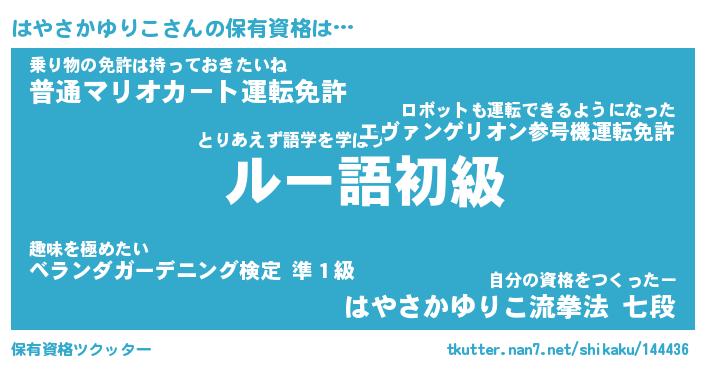 | 肩書あだ名 | 『はやさかゆりこ御曹司』 |