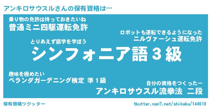 | 男性向けラノベタイトル風あだ名 | 『アンキロサウスルの憂鬱』 |