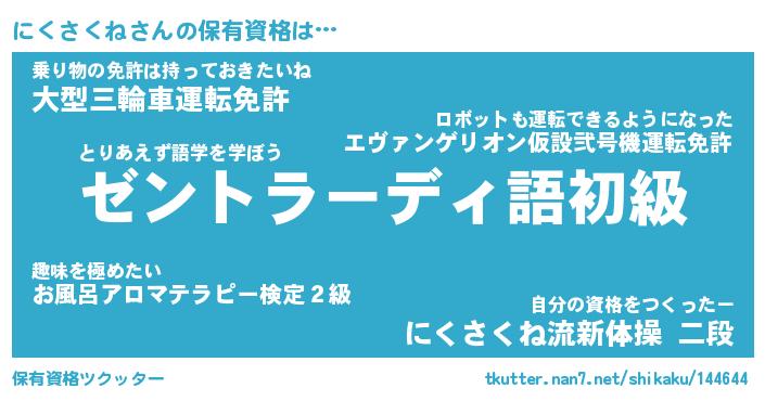 | ファンタジー風あだ名 | 『ニクフェル』『エターナルニクサクネー』 |