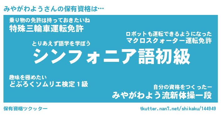 | 肩書あだ名 | 『みやがわよう御曹司』 |