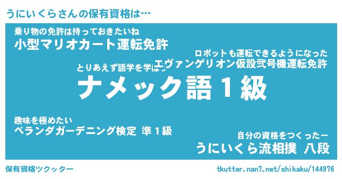| ファンタジー風あだ名 | 『ウニフェル』『エターナルウニイクラー』 |