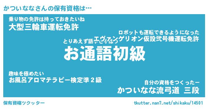 | ファンタジー風あだ名 | 『カツフェル』『エターナルカツイナナー』 |