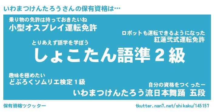 | 肩書あだ名 | 『いわまつけんたろう御曹司』 |