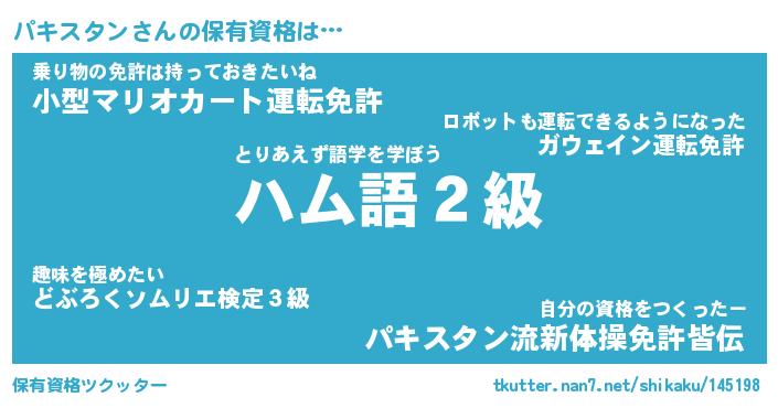 | ファンタジー風あだ名 | 『パキフェル』『エターナルパキスタンー』 |