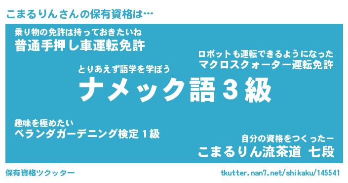 | ファンタジー風あだ名 | 『コマフェル』『エターナルコマルリンー』 |