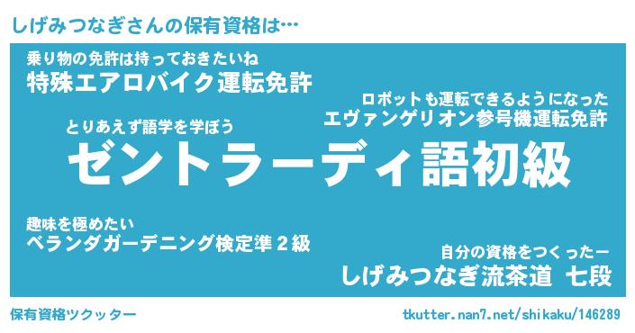 | ヒーロー風カッコイイあだ名 | 『スーパーシゲミツナギ』『天弓騎士シゲ』 |