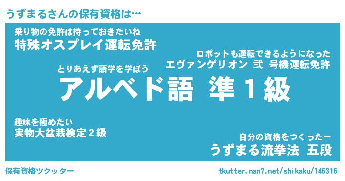 | ファンタジー風あだ名 | 『ウズフェル』『エターナルウズマルー』 |