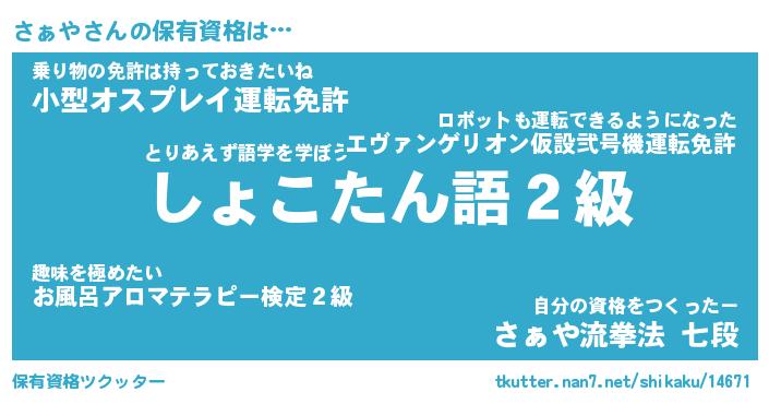 | ファンタジー風あだ名 | 『サァフェル』『エターナルサァヤー』 |