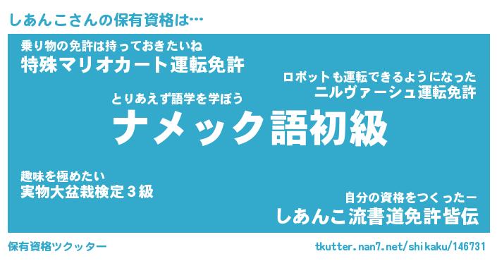 | 男性向けラノベタイトル風あだ名 | 『しあんこの憂鬱』 |