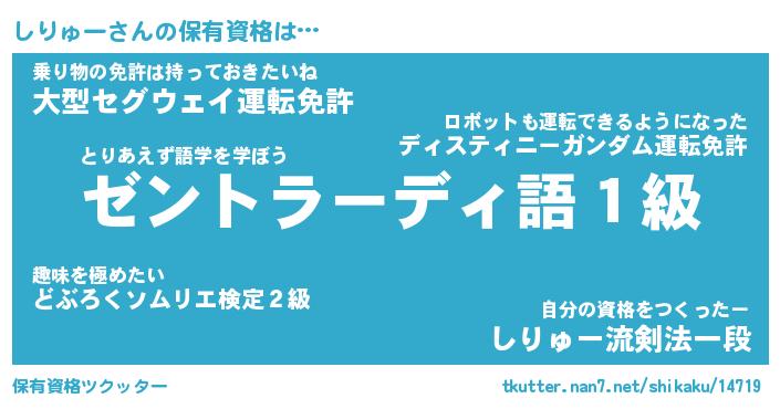 | 男性向けラノベタイトル風あだ名 | 『しりゅーの憂鬱』 |