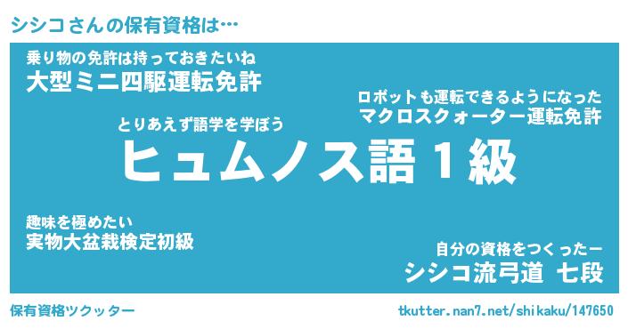 | ヒーロー風カッコイイあだ名 | 『スーパーシシコ』『ウルトラシシコマン』 |