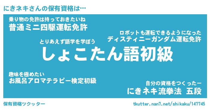 | 自動車の名前っぽいあだ名 | 『ニキティマ』『ニクア』『ニント』 |