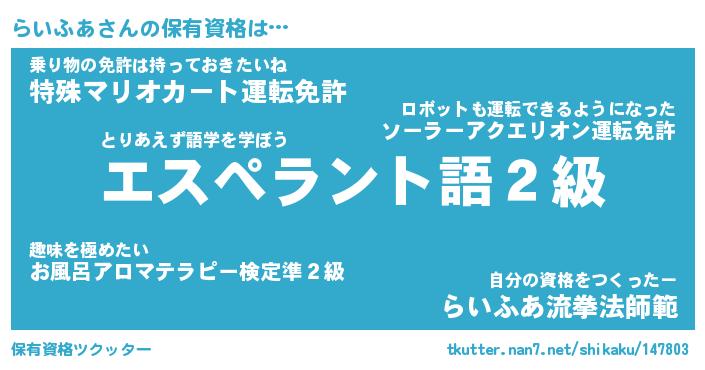 | ファンタジー風あだ名 | 『ライフェル』『エターナルライフアー』 |