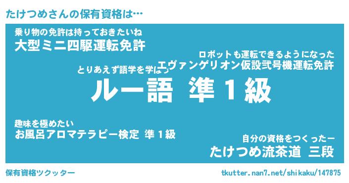 | ファンタジー風あだ名 | 『タケフェル』『エターナルタケツメー』 |