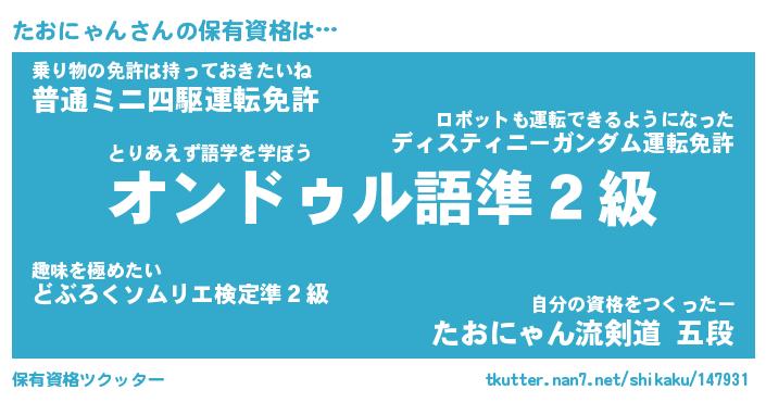 | ファンタジー風あだ名 | 『タオフェル』『エターナルタオニャンー』 |