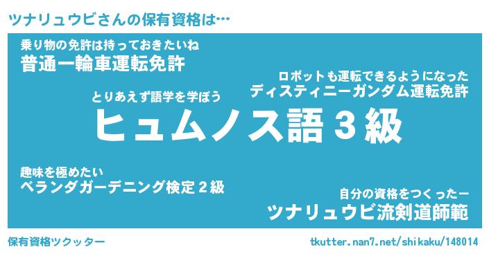 | 肩書あだ名 | 『ツナリュウビ店長』『ツナリュウビ塾長』 |
