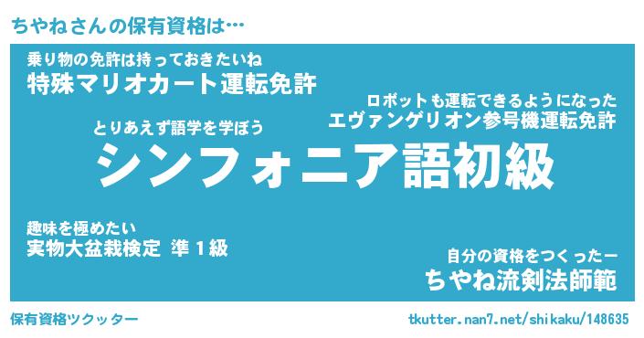 | ファンタジー風あだ名 | 『チヤフェル』『エターナルチヤネー』 |