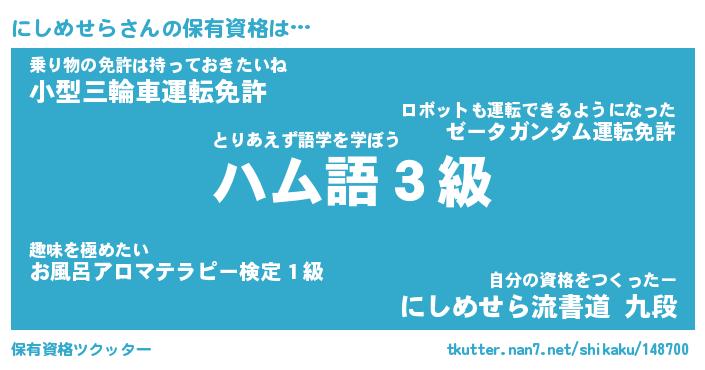 | 肩書あだ名 | 『にしめせらCEO』『にしめせら総理大臣』 |