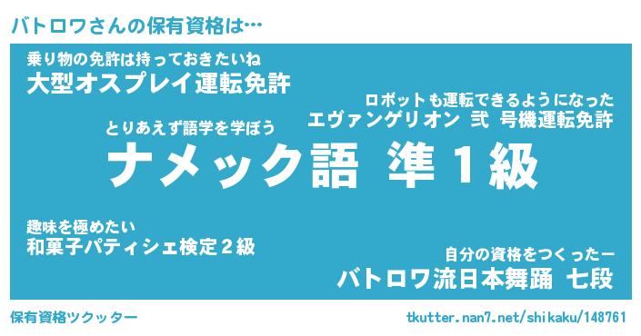 | ファンタジー風あだ名 | 『バトフェル』『エターナルバトロワー』 |
