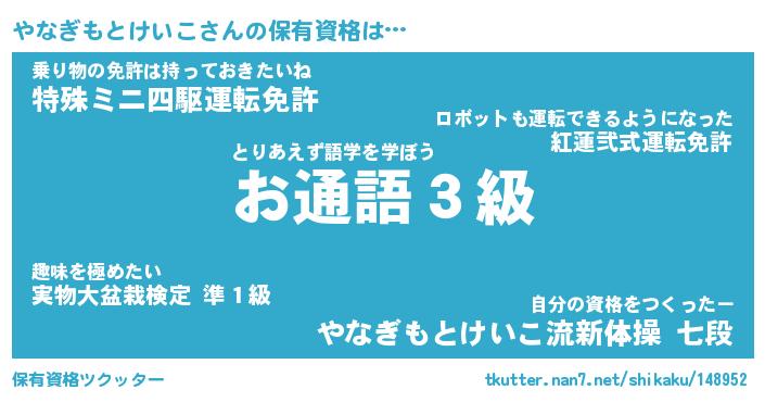 | 肩書あだ名 | 『やなぎもとけいこ店長』 |