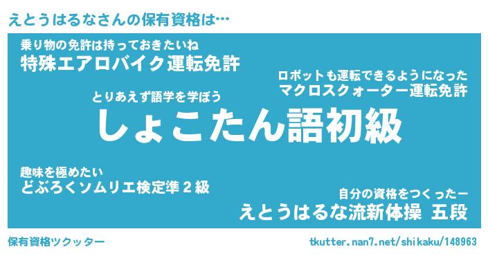 | 肩書あだ名 | 『えとうはるな御曹司』 |