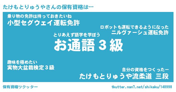 | 肩書あだ名 | 『たけもとりゅうや店長』 |