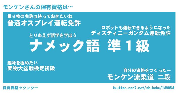 | ファンタジー風あだ名 | 『モンフェル』『エターナルモンケンー』 |