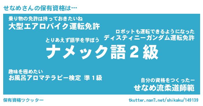 | 意味不明あだ名 | 『ペロリンせなめ』『せなめフォーエバー』 |