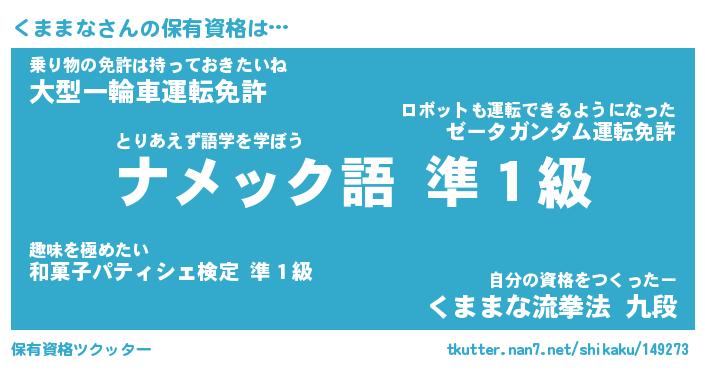 | ファンタジー風あだ名 | 『クマフェル』『エターナルクママナー』 |