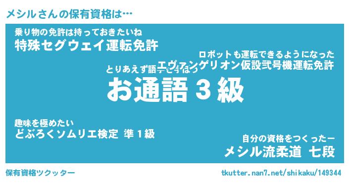| ファンタジー風あだ名 | 『メシフェル』『エターナルメシルー』 |