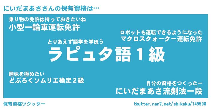| 肩書あだ名 | 『にいだまあさ社長』『にいだまあさ班長』 |