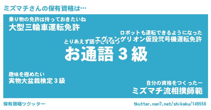| 肩書あだ名 | 『ミズマチ店長』『ミズマチ総理大臣』 |