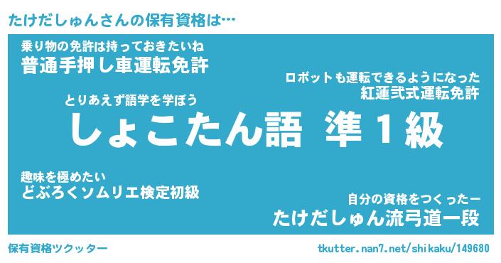 | ヒーロー風カッコイイあだ名 | 『スーパータケダシュン』『黄金騎士タケ』 |