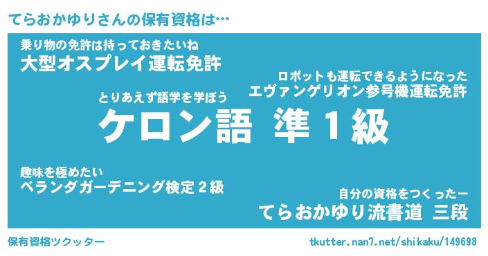 | 伝説のあだ名 | 『伝説の傭兵てらおかゆり』 |