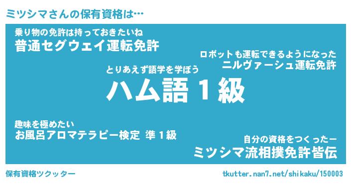 | 肩書あだ名 | 『ミツシマ社長』『ミツシマ大統領』 |