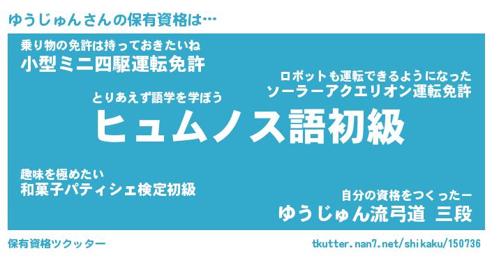 | ファンタジー風あだ名 | 『ユウフェル』『エターナルユウジュンー』 |