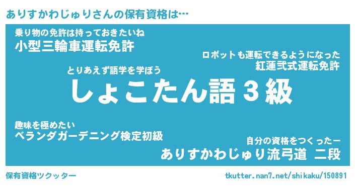 | 伝説のあだ名 | 『封印されし傭兵ありすかわじゅり』 |