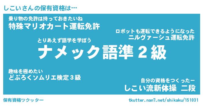 | 男性向けラノベタイトル風あだ名 | 『しこいの憂鬱』 |