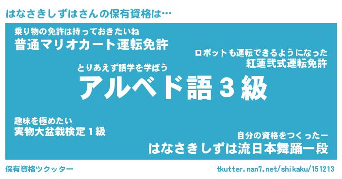 | 恥ずかしいあだ名 | 『プリティーはなさきしずは』『はなちん』 |