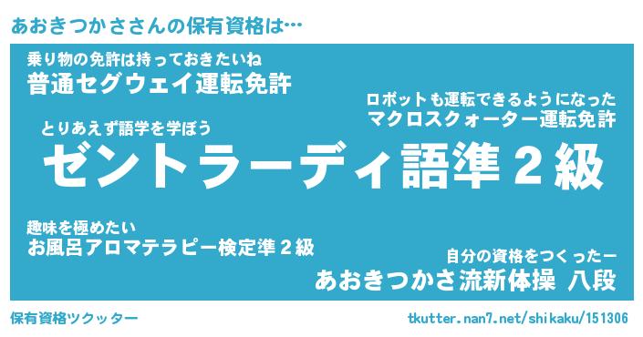 | ヒーロー風カッコイイあだ名 | 『スーパーアオキツカサ』『幻影騎士アオ』 |