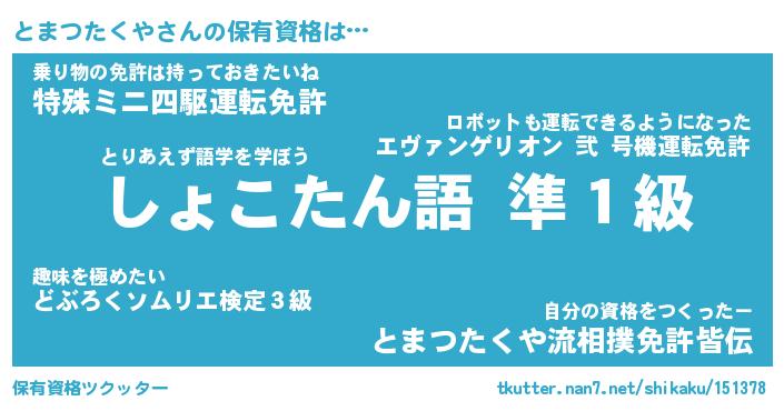 | 肩書あだ名 | 『とまつたくや店長』『とまつたくや担任』 |