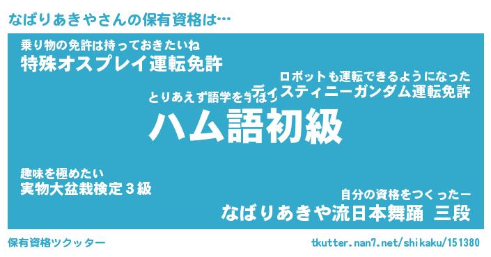 | 肩書あだ名 | 『なばりあきや御曹司』 |