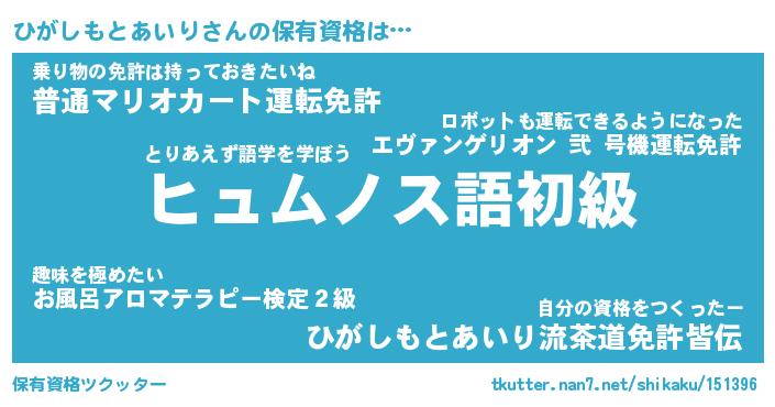 | ツイッター | ひがしもとあいりさんのツイッターID『namakemono_nyan』 |