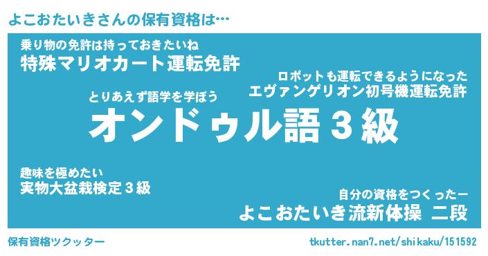 | 肩書あだ名 | 『よこおたいき店長』『よこおたいき校長』 |